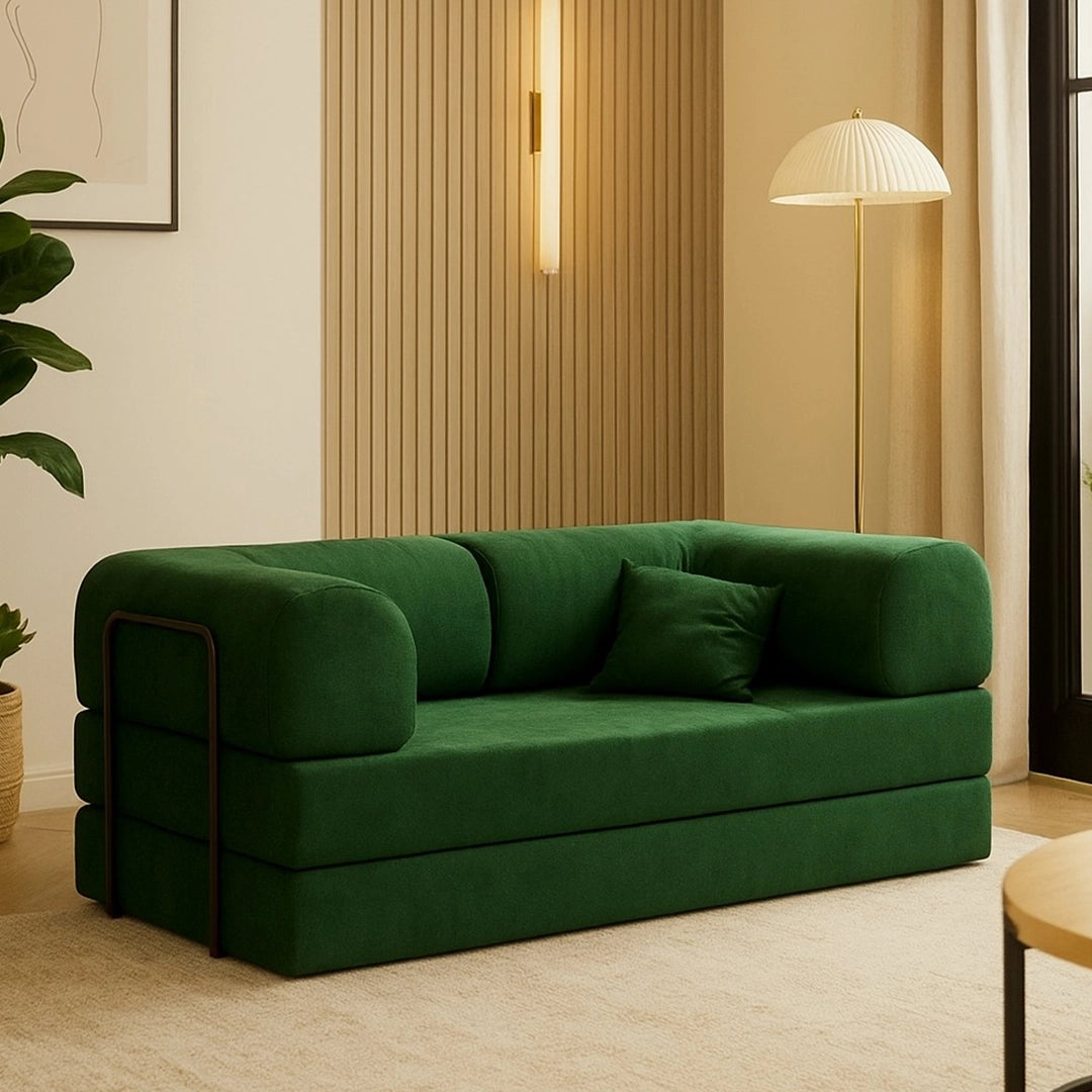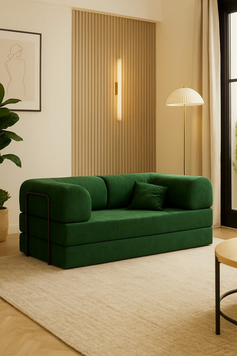 Effortlessly transitions between a sofa and a double bed, offering versatility for any space. Easy-to-assemble modular design, available in multiple fabrics & colors.