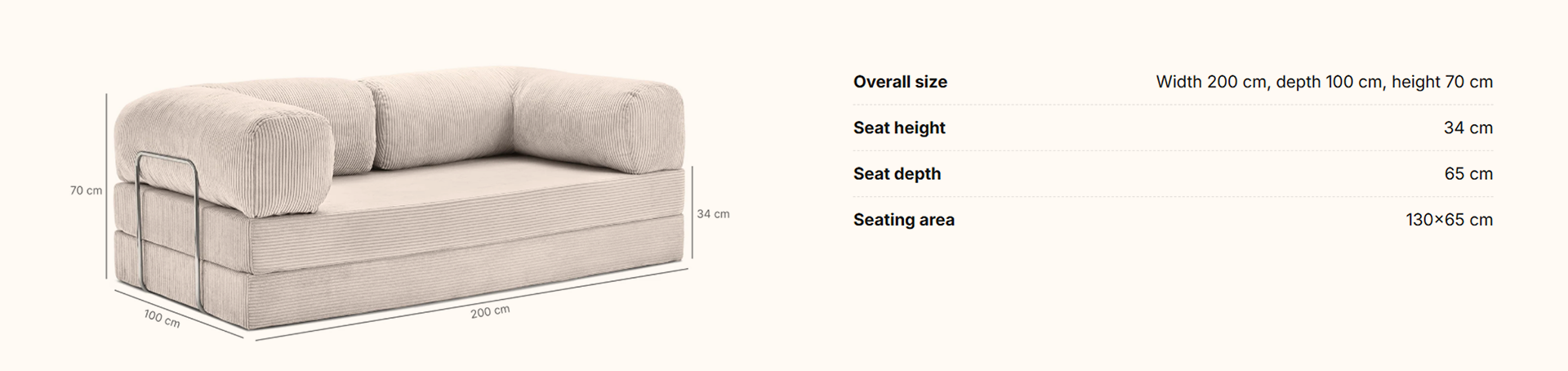 Functions as a 3-seater sofa